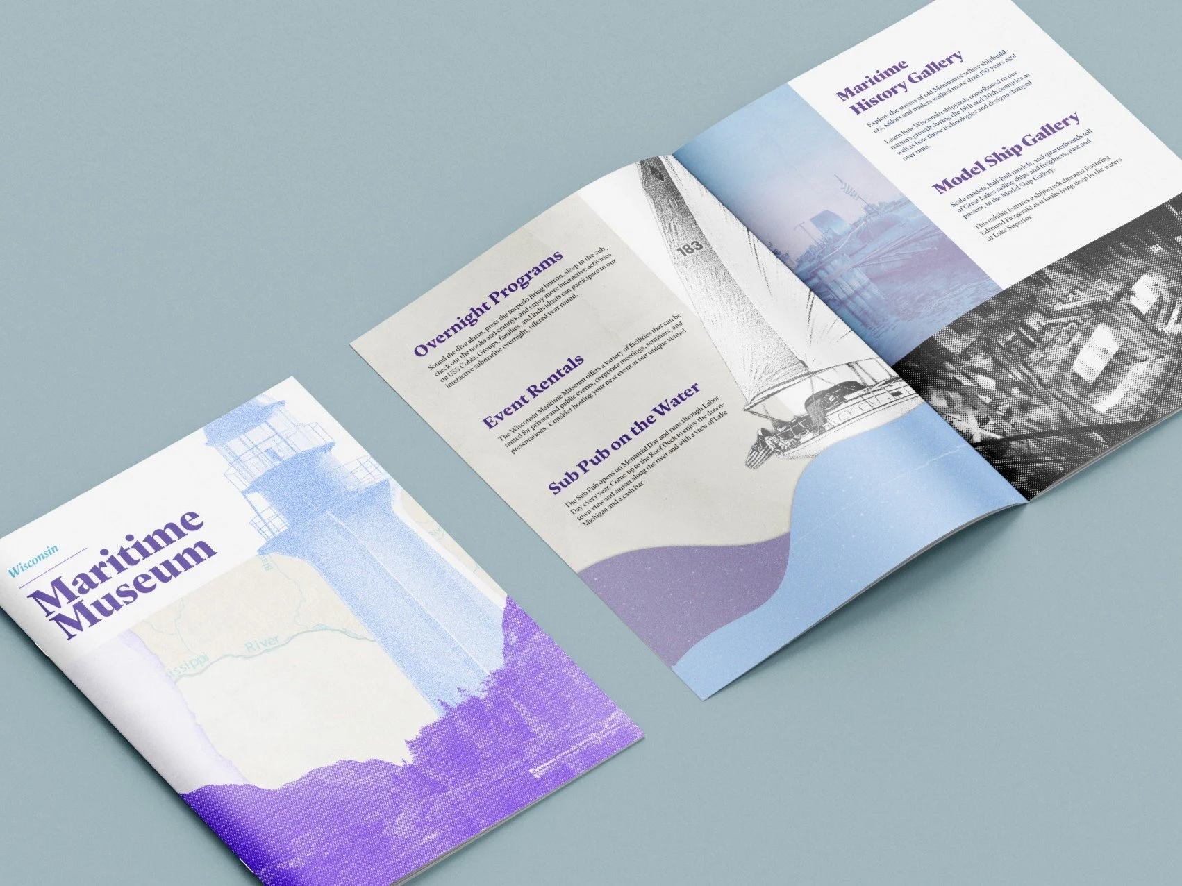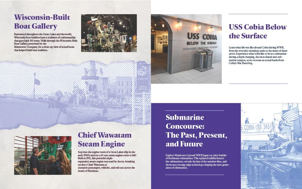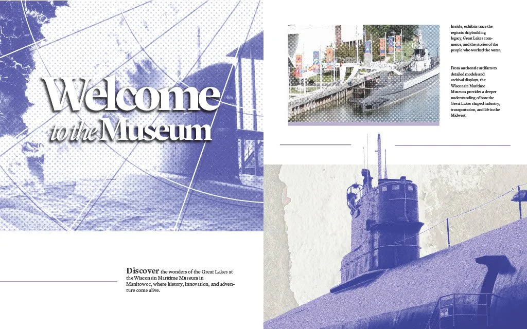 A short informational brochure that details some of the attractions and exhibits of the Wisconsin Maritime Museum.